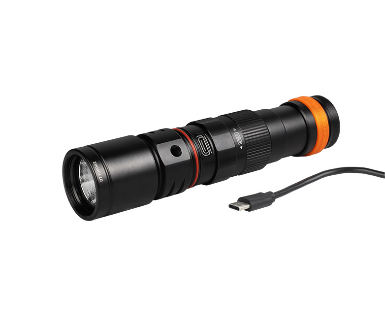 OrcaTorch草莓视频官网 DC710是專為水下照明而設計的潛水燈。它具有USB Type-C直充功能,方便用戶(hù)充電使用。它采用了Luminus LED,最(zuì)大亮度可達3000流明。DC710采用一節21700 5000mAh鋰離子電池供電,提供可靠的電力支持。具有6度的發光角度,能夠提供超級聚焦照明效果。它配備了(le)鈦合金側麵按鈕開關,方便操作,並且還包括安全鎖定功能以防止意外觸發。它在水深150米處能夠正常工作,為潛水員提供可靠的照明解決方案。
